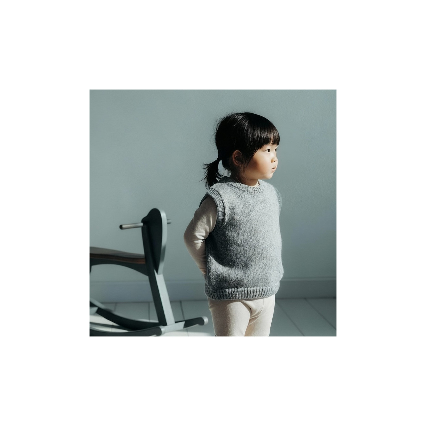 PDF knitting pattern of the William tank top, for children in French grey color in jersey stitch, with ribbed edges.