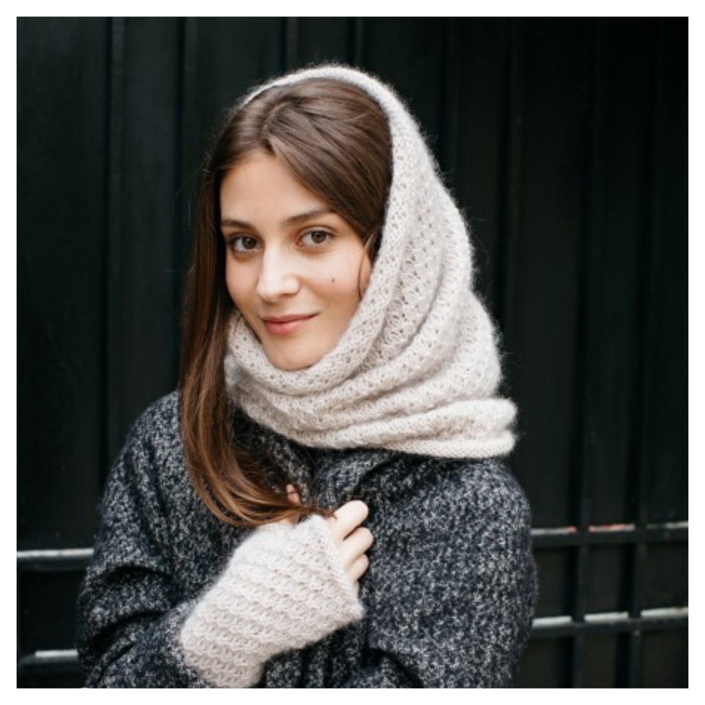 Knitting Kit of the Voltaire Snood. Mamy Factory wool yarnds is provided with a pattern that is written in English.