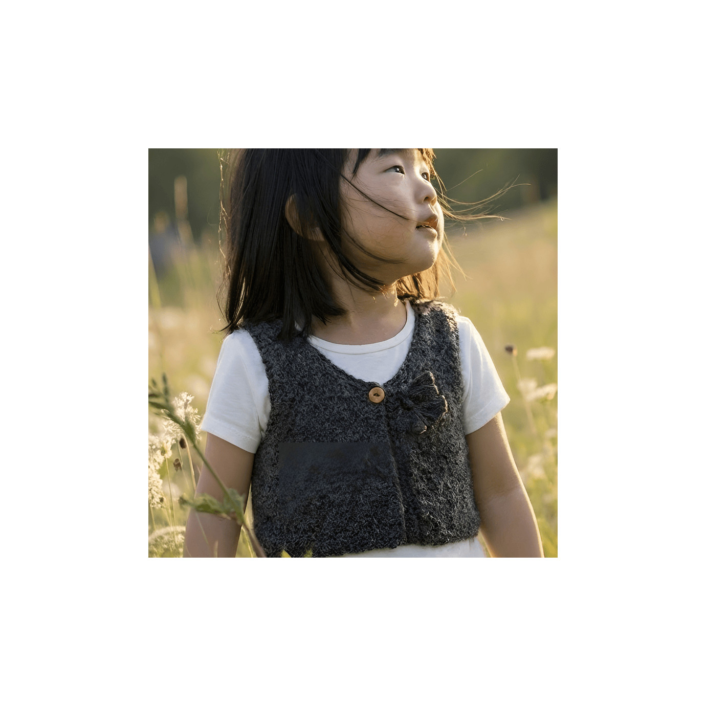 For baby boys and girls, shepherd's handknitted vest made from wool and alpaca. Closed by one wood button with braided buttonhole.