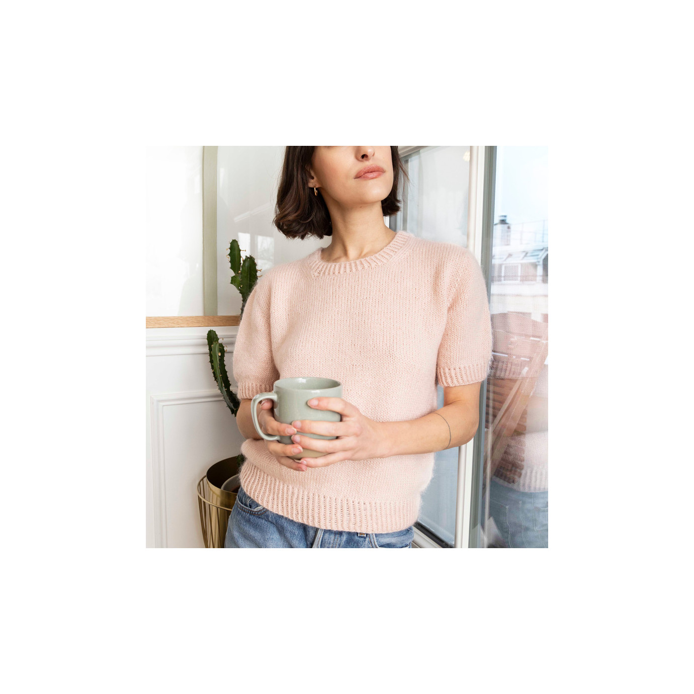 Ce modele est tricoté main par notre équipe de tricoteuses, il est en taille S, taille 38.