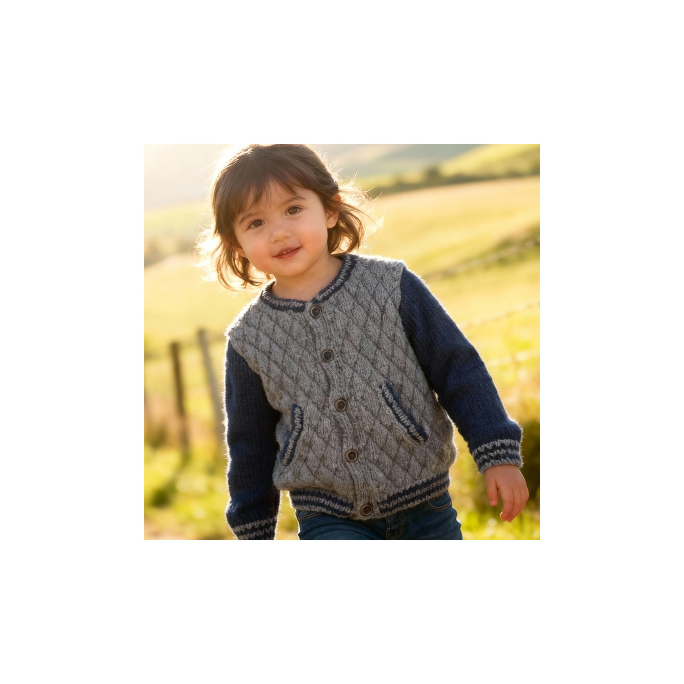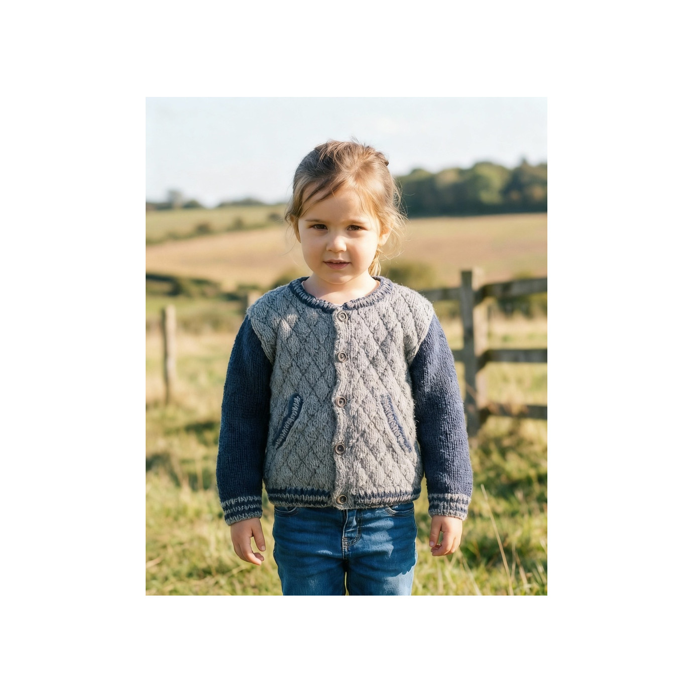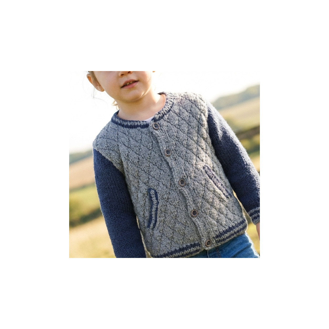Modèle PDF tricot du blouson John pour enfants. Modèle à réaliser au tricot au point de jersey matelasse et cotes 1/1. Un modele de blouson branche et moderne.