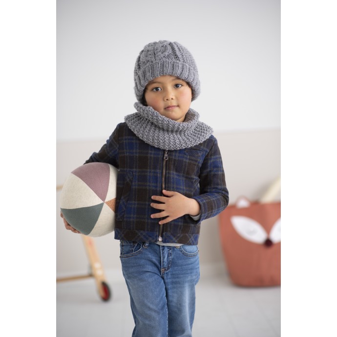 Modèle PDF tricot du bonnet Lucas pour enfants. Modèle à réaliser au tricot au point de sable et côtes zigzag. Un bonnet pour un style decontracté et moderne.