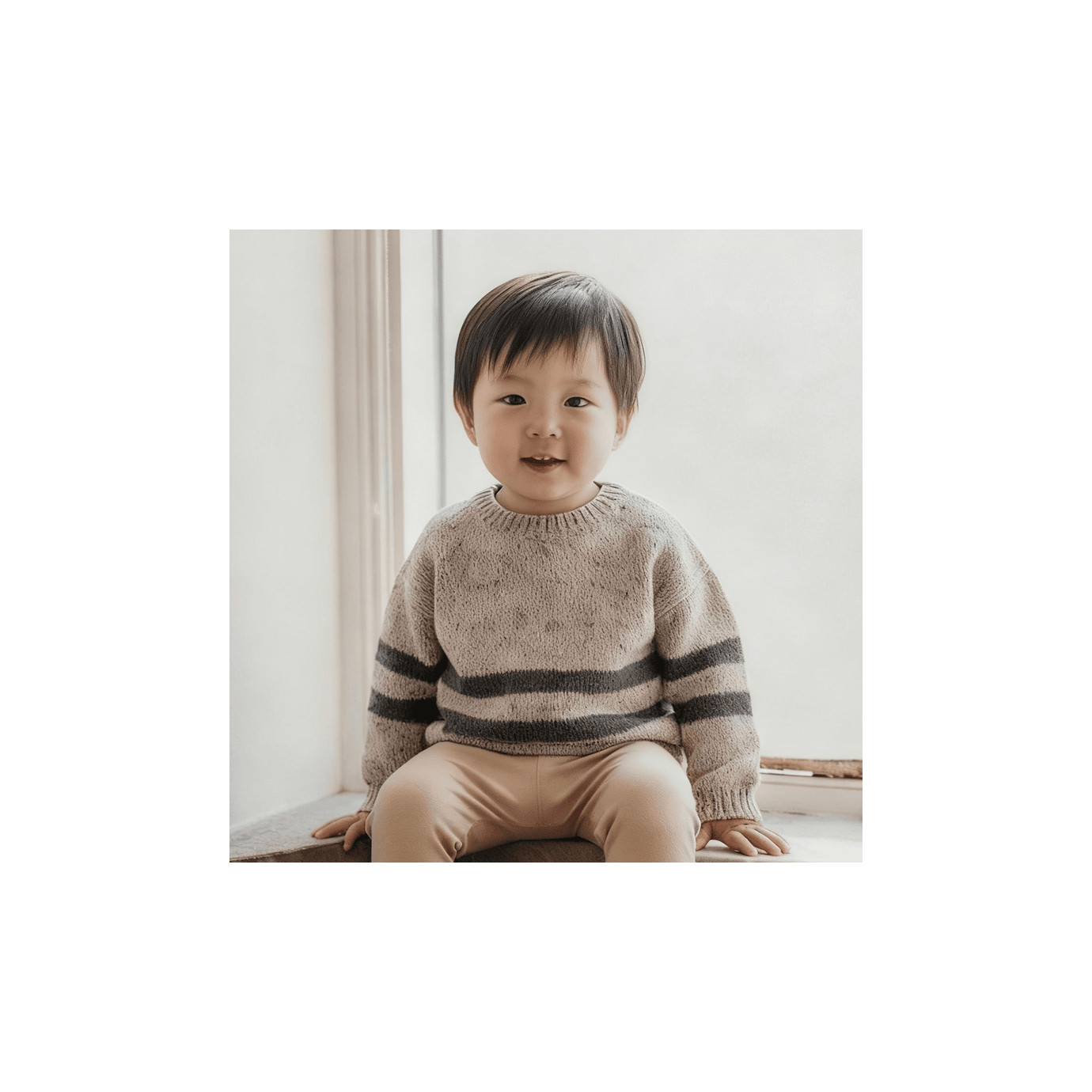 Modèle tricot du Pull Diego pour enfants avec son col en rond et sa jolie rayure.