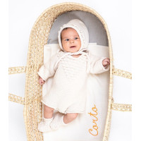 Modèle PDF tricot des chaussons à Noppes Corto pour bébé. Des chaussons à assembler avec le body et le béguin Corto.